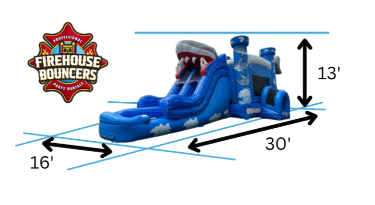 🦈Setup area required: 30’ L x 15’ W x 15’ H