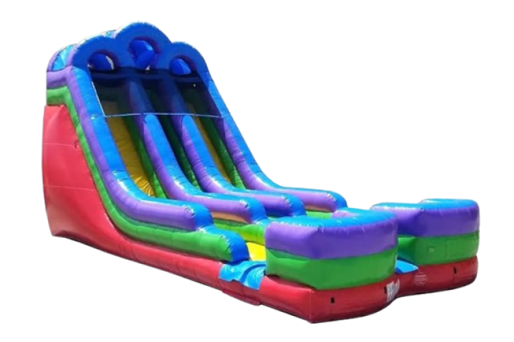 Turn up the excitement at your next event with this 18-foot Retro Rainbow Double Bay Inflatable Water Slide — designed to deliver big thrills and unforgettable memories! With two sliding lanes, this slide lets kids (and adults!) race each other to the splash zone for double the fun and half the wait. Great for large parties, including school field days, church events, block parties, corporate picnics, neighborhood gatherings — any event where fun and cooling off are on the agenda! This slide can also be used dry. Can be used for adults up to 250lbs per rider.