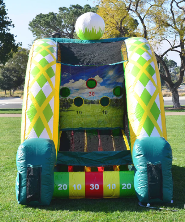 Step up to the tee with the Golf Sports Challenge — a crowd-pleasing rental that brings the fun and focus of golf to parties, school events, corporate gatherings, and backyard get-togethers. Designed for players of all ages and skill levels, this attraction offers a safe, accessible way to practice putting, test aim, and enjoy friendly competition without needing a full course. This game creates an inviting space for individual practice, point-based games, or tournament-style play, making it perfect for family events, youth activities, or team-building moments. Whether used as a relaxed activity or an upbeat contest, the Golf Sports Challenge delivers engaging, low-impact entertainment that encourages skill-building, patience, and lighthearted rivalry.